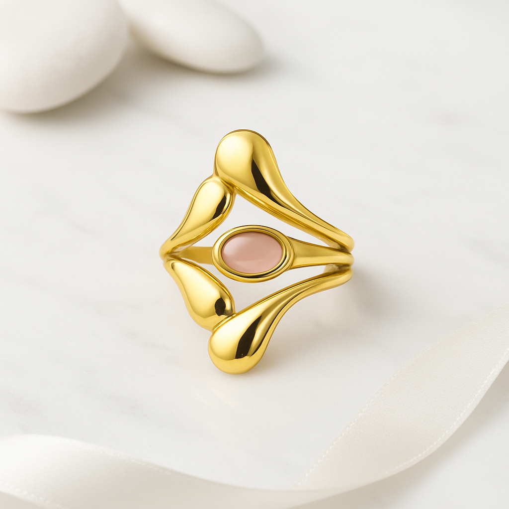 The design balances elegance and boldness. It’s not a ring you glance at once — it’s a ring that draws the eye back, again and again, with its unusual geometry and gentle symmetry. The warm gold and soft rose tone together evoke tenderness, confidence, and a quiet kind of luxury.