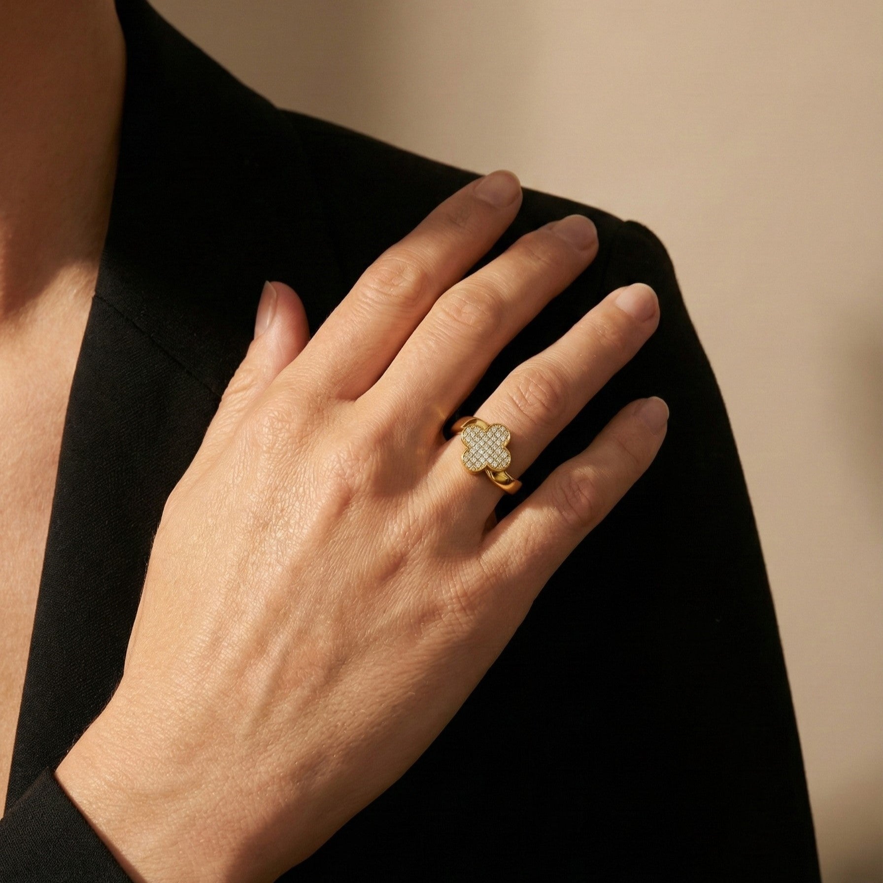 Set on a smooth, adjustable band, this ring is designed to be your everyday talisman. Whether worn alone as a delicate statement or stacked for extra sparkle, it adds a touch of meaningful luxury to any look.
