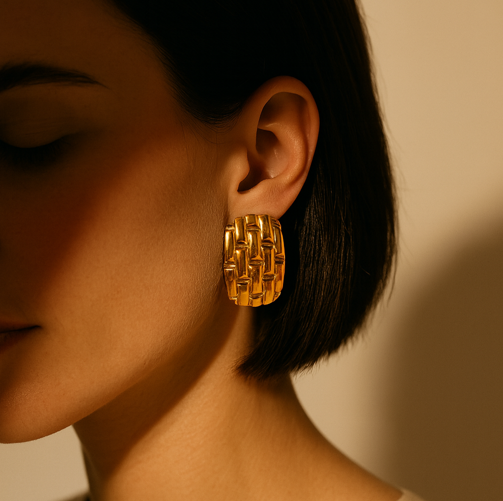 Embrace the artistry of craftsmanship and elegance with these intricately designed earrings, a masterpiece that tells a story of grace and refinement.