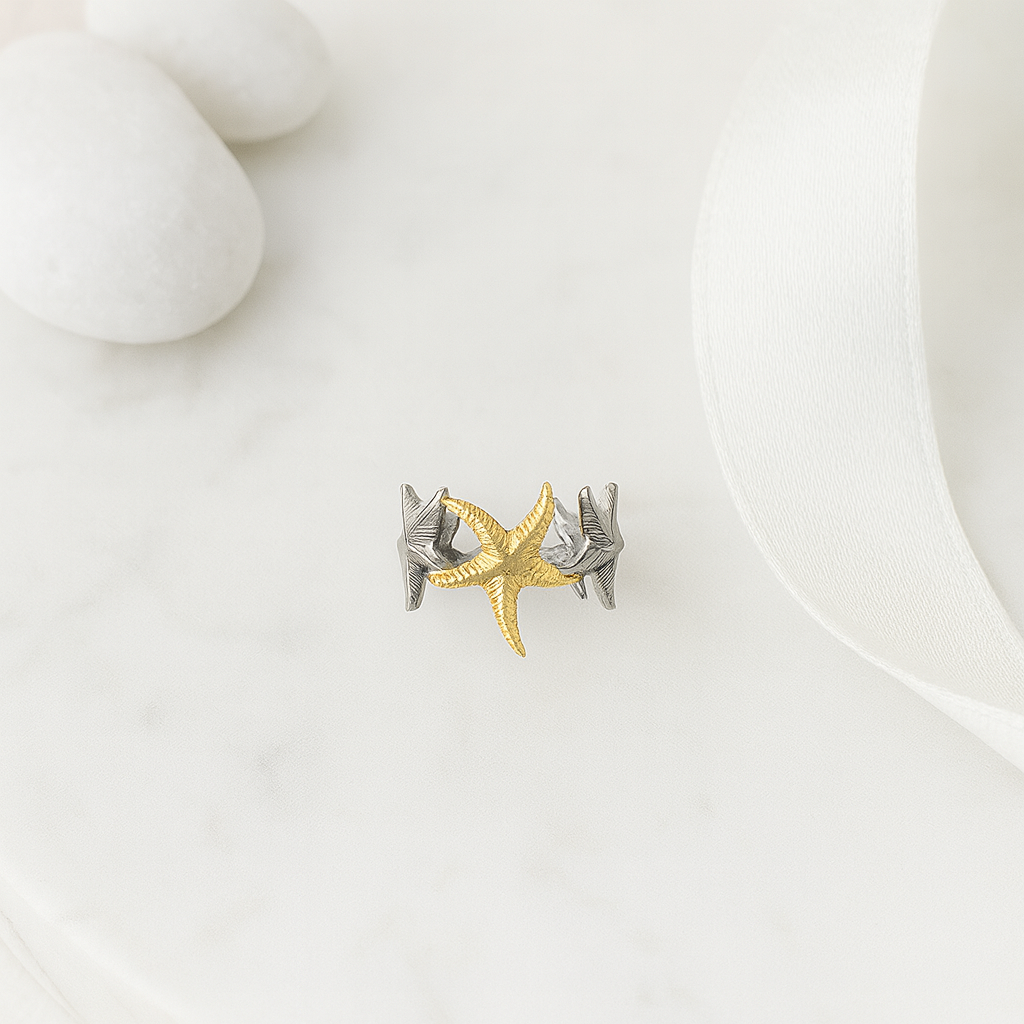 It’s a piece that captures the feeling of shoreline treasures: sun, salt, waves, and discovery. Modern yet organic, refined yet full of charm — perfect for someone who feels most themselves near the ocean, drawn to nature, calmness, and quiet wonder.